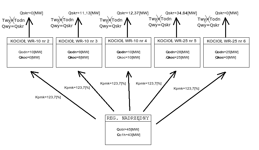 14 - Qobl^2/(Qwy*Qsumk) - Korekta procentowa mocy do utrzymania z nadrzędn. (Kpmn) [%] - korekta procentowa mocy do utrzymania z nadrzędnego [%] - Wielkość korekty wyznaczana przez regulator nadrzędny. Sposób jej wyliczenia został przedstawiony w punkcie: Algorytm sterowania kotła WR-10 na wydajność